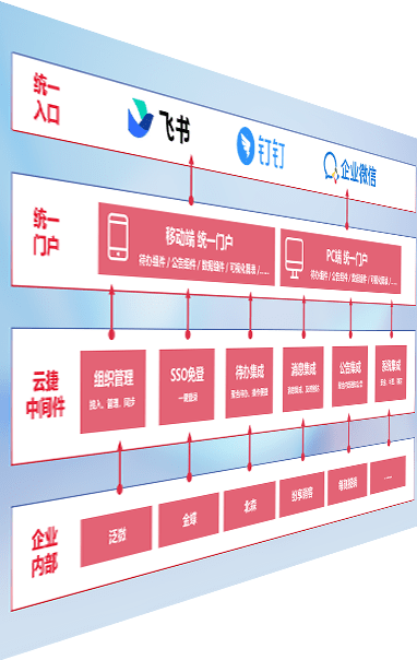 对协作平台提供支持服务,,支持企业应用与协作平台对接,,,包含组织同步、、、消息集成、、待办集成等。。。。支持目前主流的协作平台:钉钉、、、企微和飞书。。